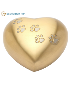 Urne en forme de cœur avec des pattes de chien ou chat sur le dessus disponible en plusieurs couleurs.